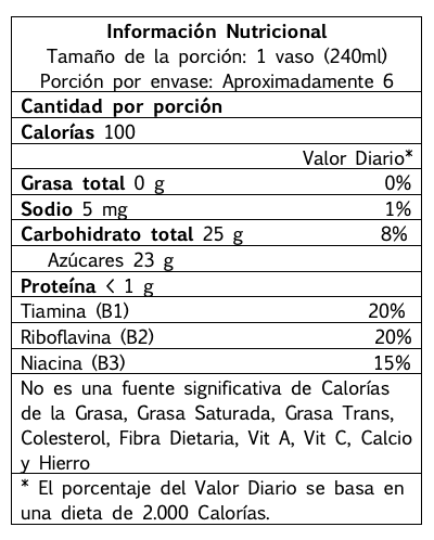 El resto son vitaminas que cubren un porcentaje importante del valor diario para una dieta de 2.000 calorías. Recordemos que en Colombia las personas suelen tener requerimientos mucho menores, por lo tanto, ese porcentaje podría incrementar, según sea el caso.