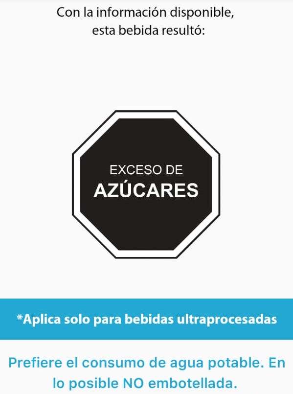 Cuando el Etiquetado Frontal de Advertencias para Colombia esté reglamentado y funcionando, el producto traerá en su parte frontal el siguiente sello de advertencia. La información a continuación la arroja la aplicación Escáner Nutrimental, que recomiendo descargar: